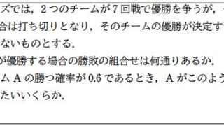 いかがでしたでしょうか。これらの2題の結果から,トーナメント戦では,組合せが決まる前はすべての組合せを考え,実力が同じものについては優勝する確率は等しく,組合せが決まった後は,強さが異なるものが混じっている場合,同じ実力でもどこに入るかで優勝する確率が異なることが分かります。最後に一般的な問題を付けておきます。次はリーグ戦の確率について考えてみたいと思います。ではまた。