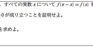 5cb876a327caa5175e989df101426a20いかがでしたでしょうか。これらの問題も大学入試ではわりと見かけるので,この前の点対称性を利用した定積分とともに基本パターンとして理解しておくとよいと思います。参考書等を見てもよく載ってはいるのですが,分類がうまくなされていないので,線対称性を利用したものとして,偶関数の定積分の延長上のものと理解しておくとよいと思います。1題類題を付けておきます。ではまた。